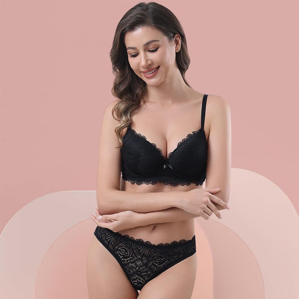12 Peças Lingerie Conjunto Com Aro Renda e Bojo Calcinha Fio Dental 8098 Cores E Tamanhos Variados