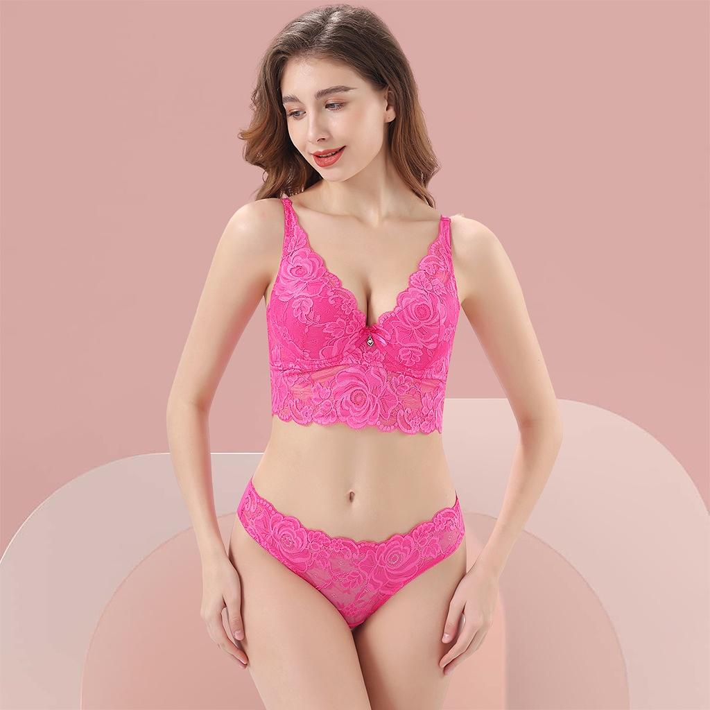 Lingerie Conjunto Costas Largas Estilo Cropped Com Aro Com Bojo e Renda Calcinha Fio Dental 6931