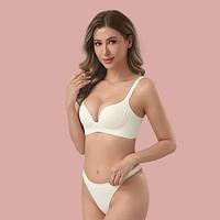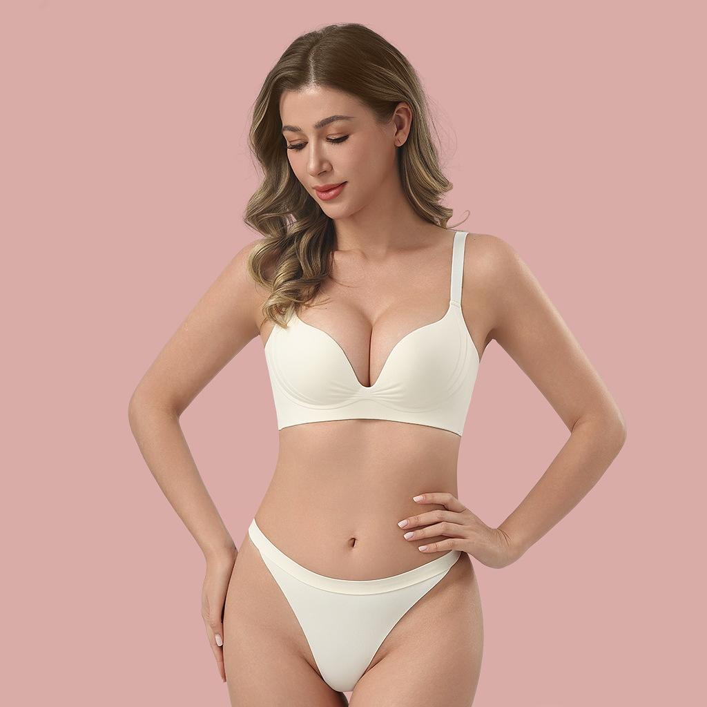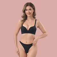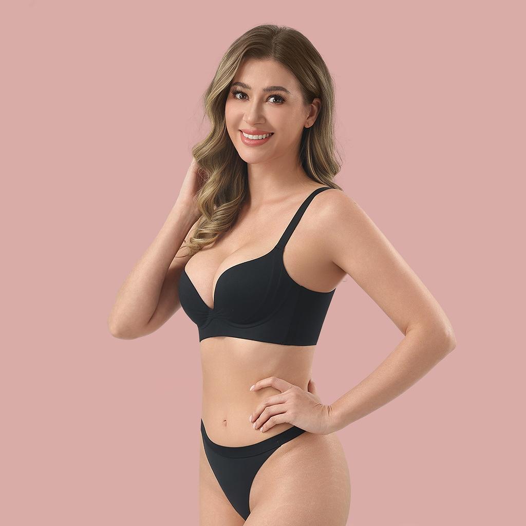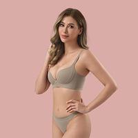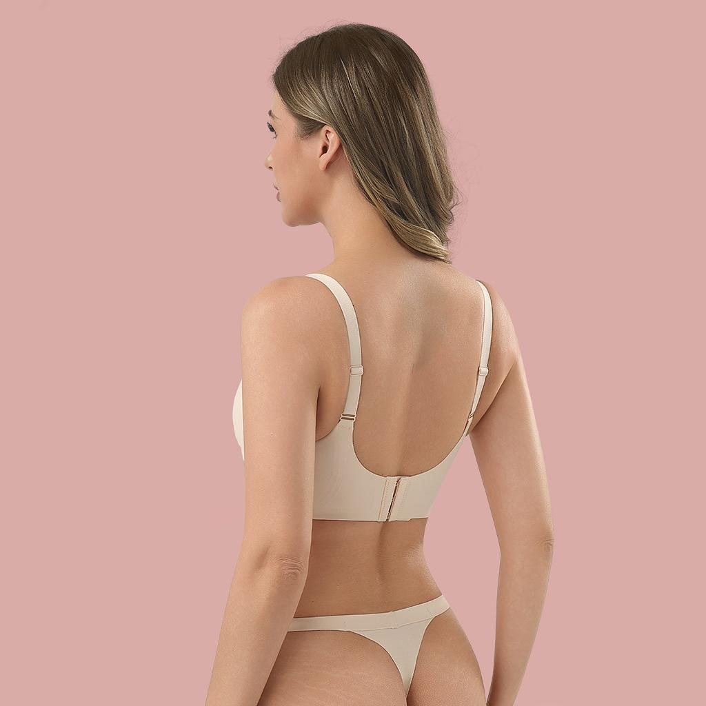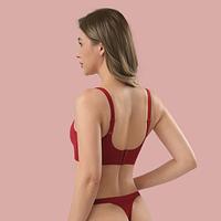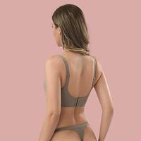 Seu acabamento liso e meia taça é moderno e garante invisibilidade sob a roupa, enquanto a calcinha de corte anatômico e