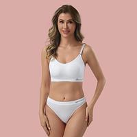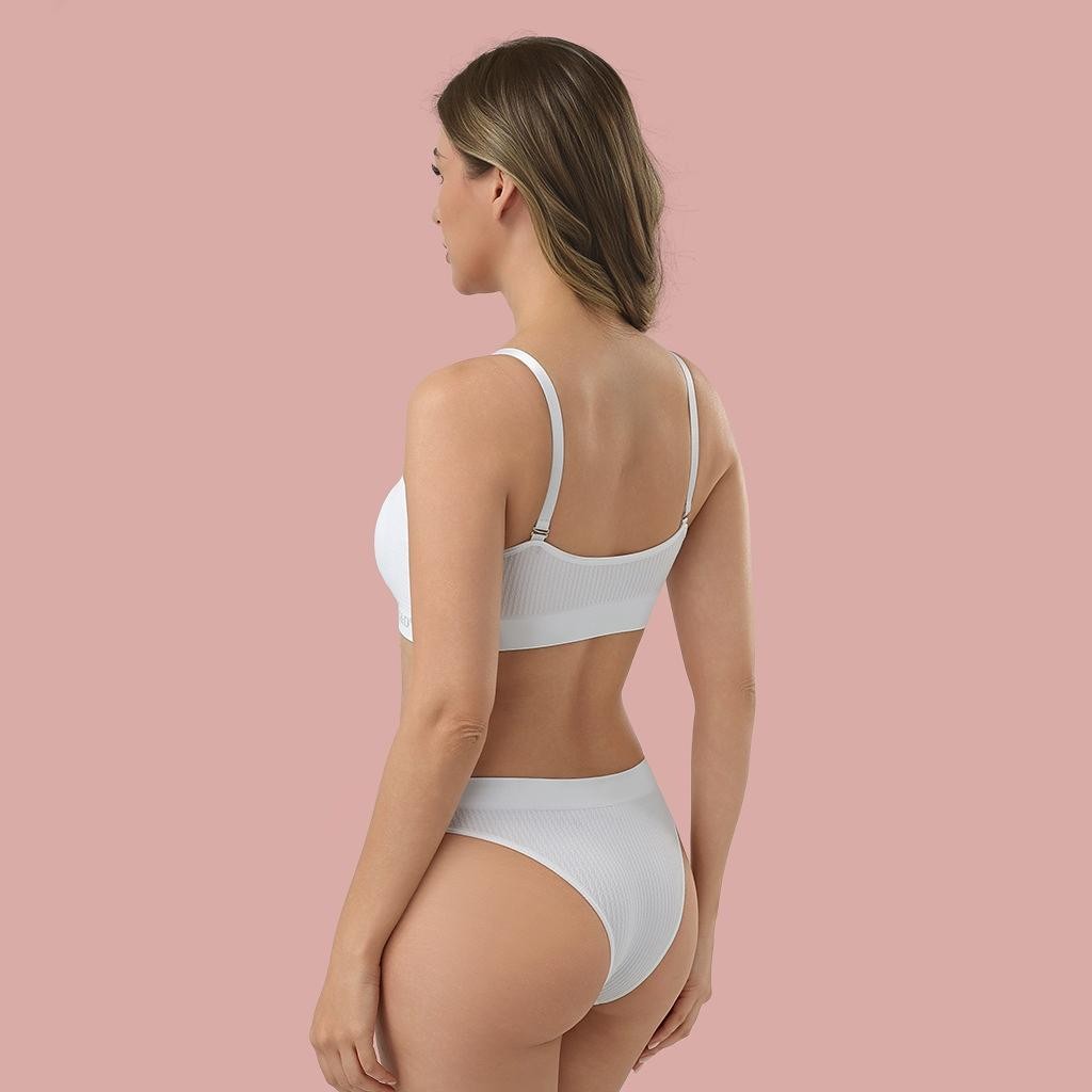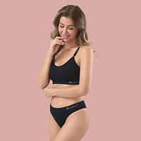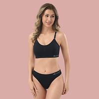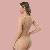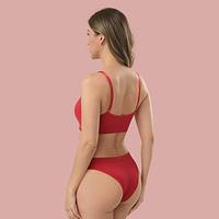 O sutiã possui modelagem sem aro, com alças reguláveis e removíveis permitem melhor ajuste ao corpo. A Base mais larga